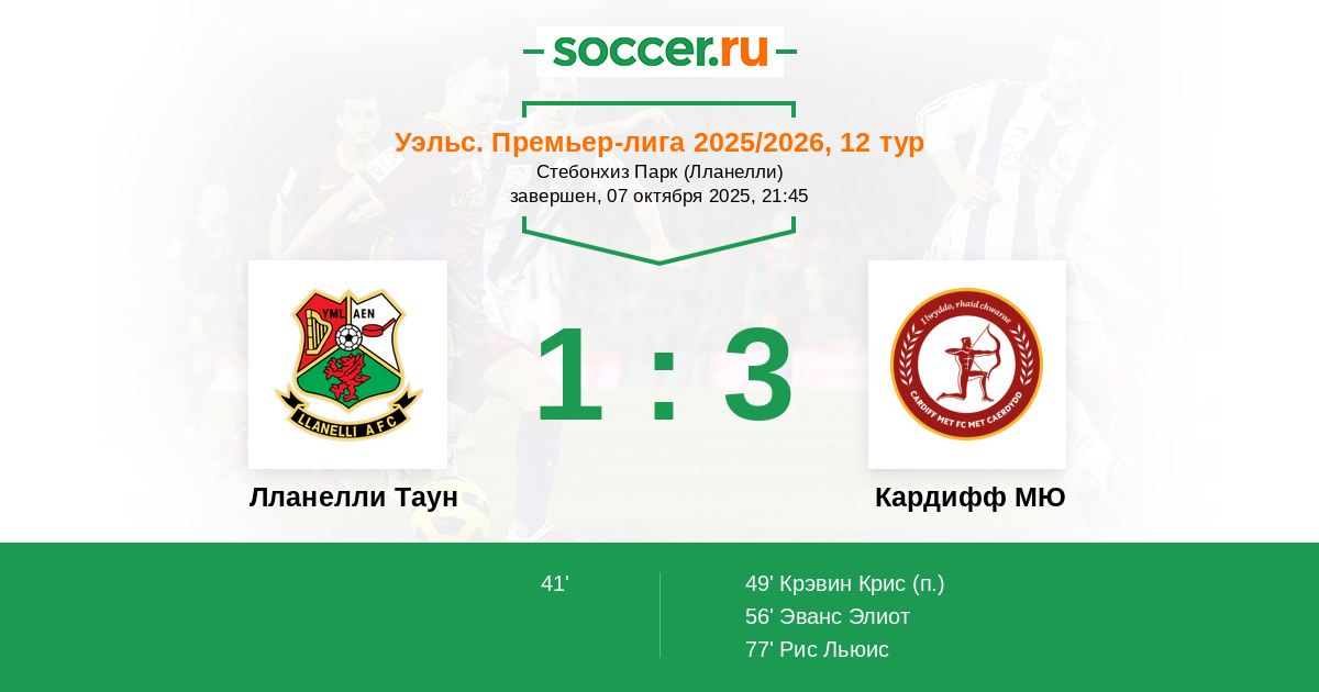 Лланелли Таун - Кардифф МЮ: обзор матча 7 октября 2025