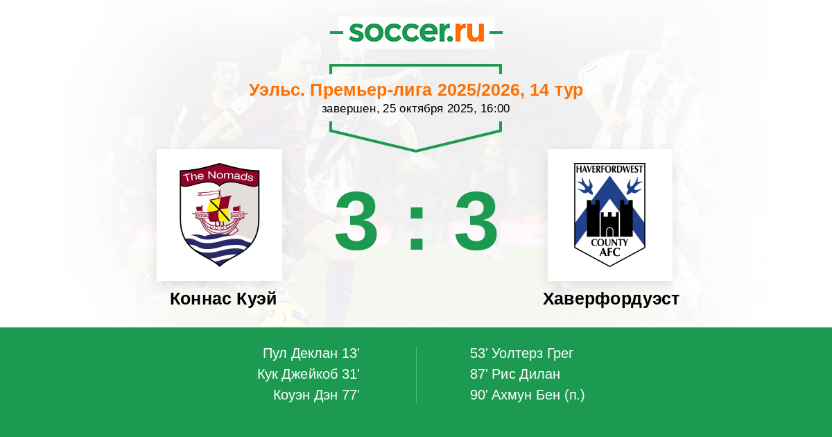 Коннас Куэй - Хаверфордуэст: обзор матча 25 октября 2025