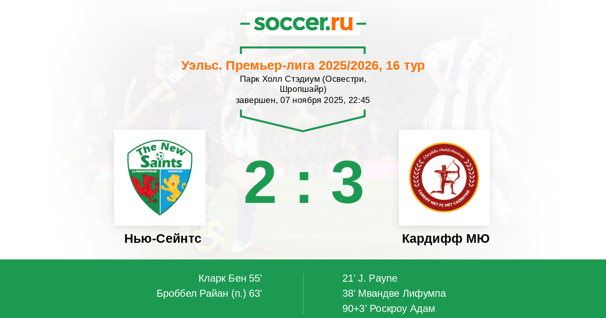 Нью-Сейнтс - Кардифф МЮ: обзор матча 7 ноября 2025