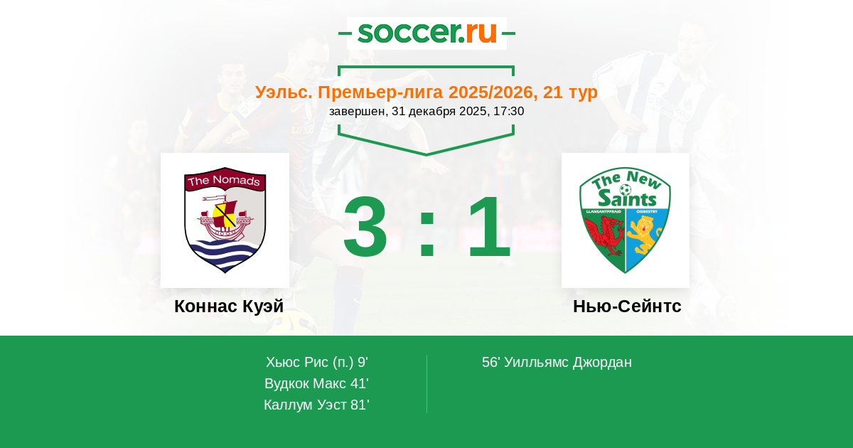 Коннас Куэй - Нью-Сейнтс: обзор матча 31 декабря 2025