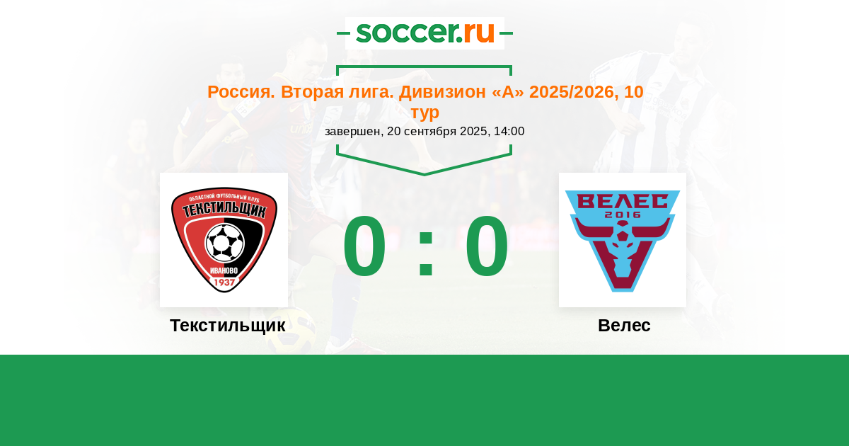 Текстильщик - Велес: обзор матча 20 сентября 2025