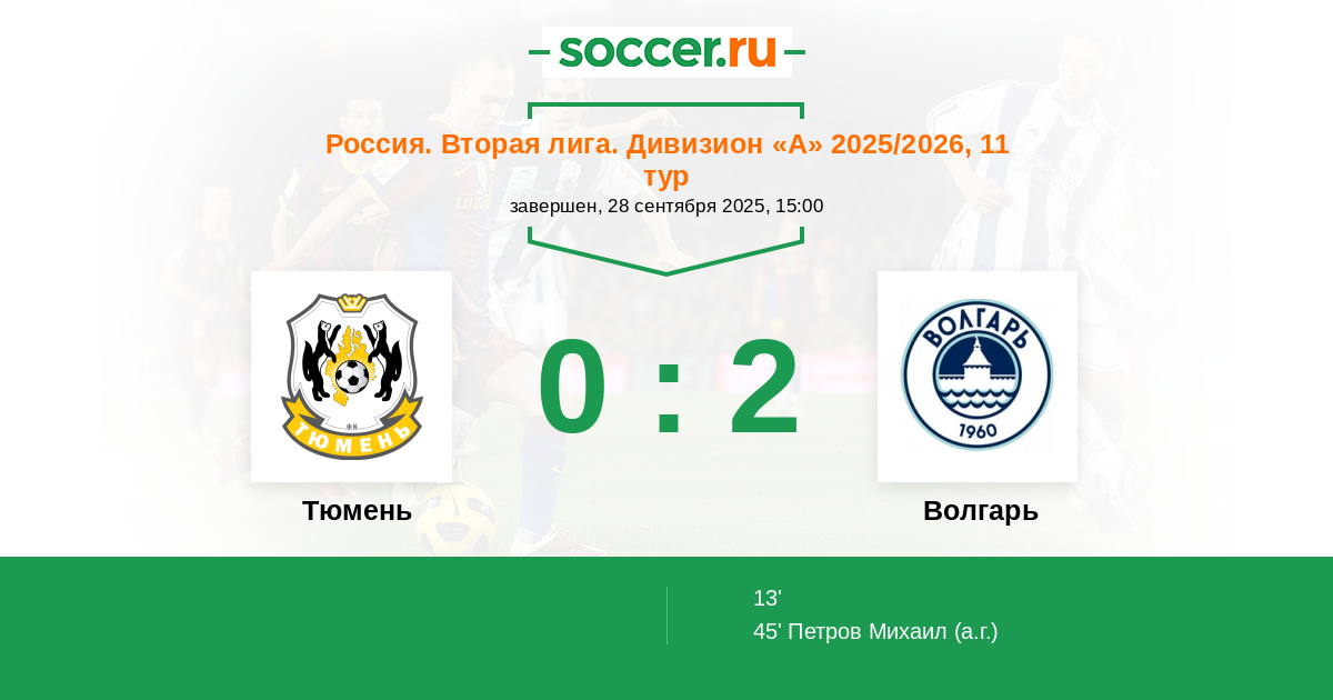 Тюмень - Волгарь: обзор матча 28 сентября 2025