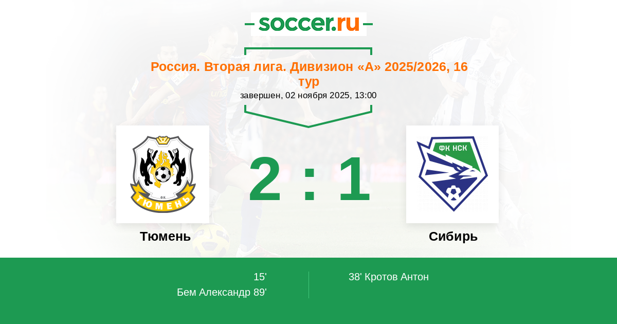 Тюмень - Сибирь: обзор матча 2 ноября 2025