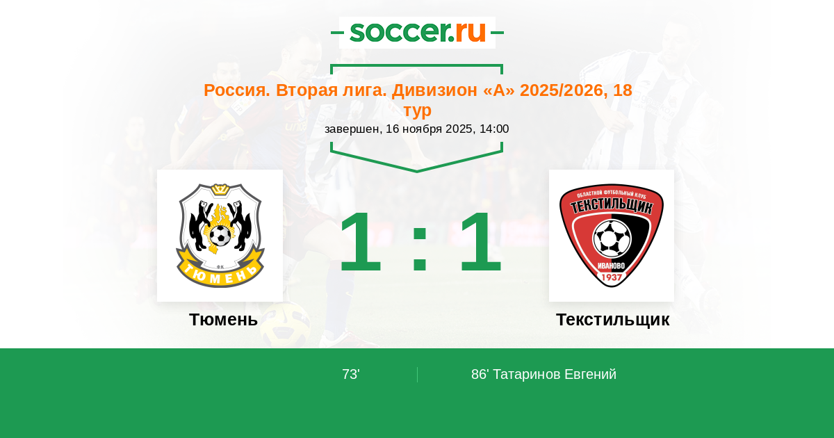 Тюмень - Текстильщик: обзор матча 16 ноября 2025