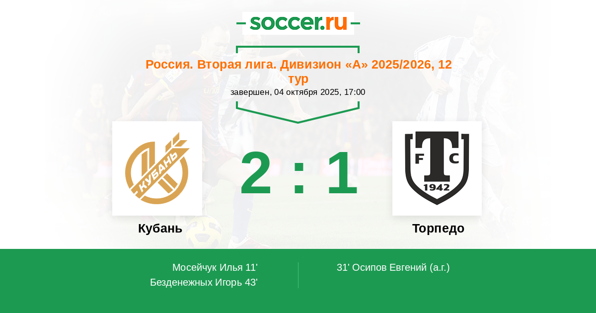 Кубань - Торпедо: обзор матча 4 октября 2025