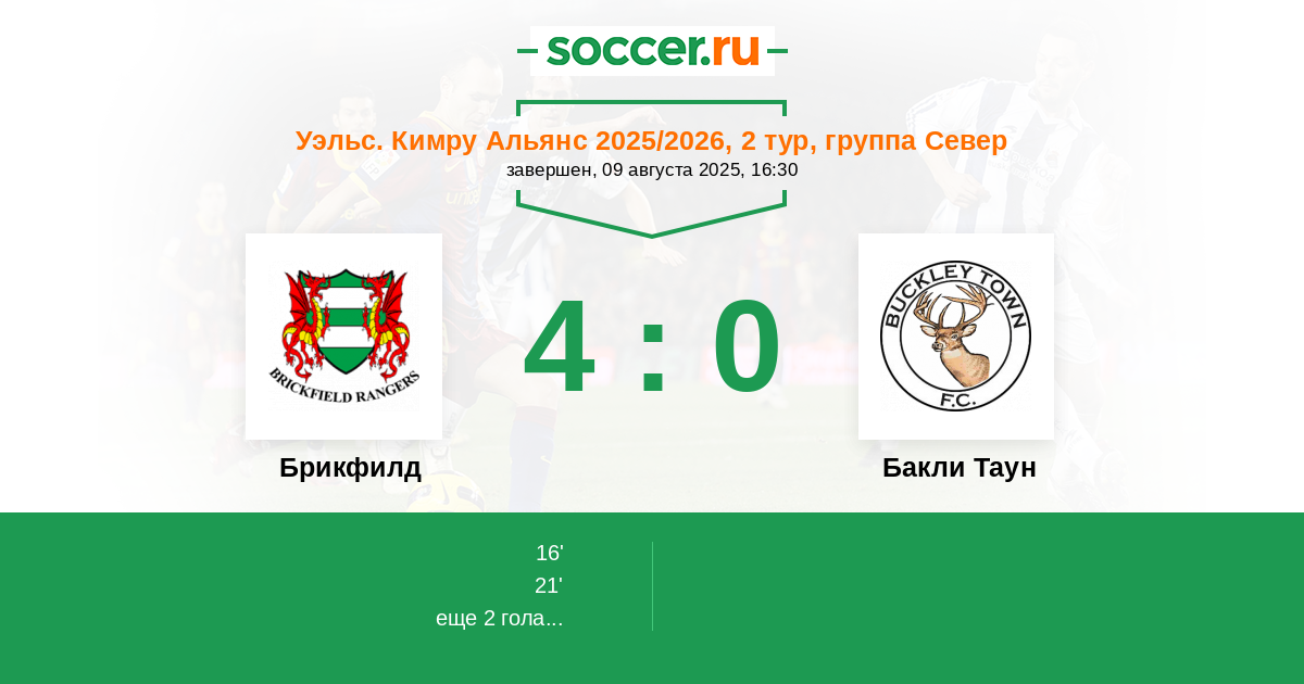 Брикфилд - Бакли Таун: обзор матча 9 августа 2025
