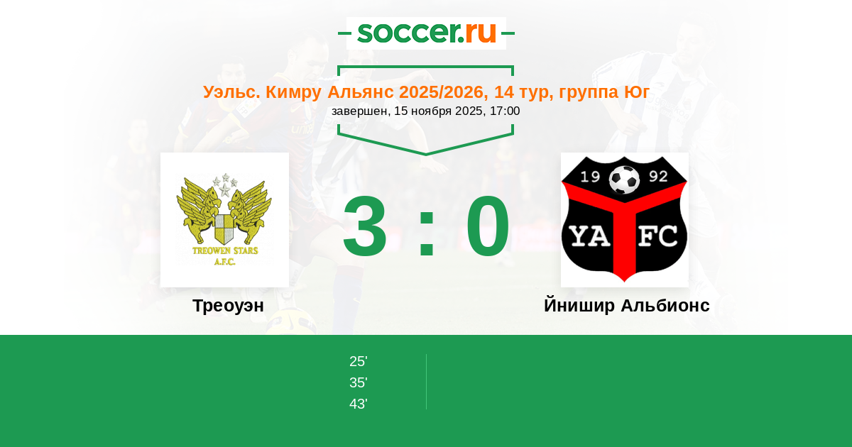 Треоуэн - Йнишир Альбионс: обзор матча 15 ноября 2025