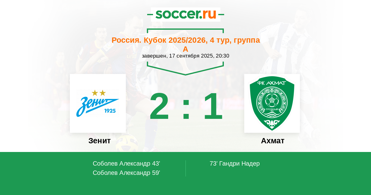 Зенит - Ахмат: обзор матча 17 сентября 2025