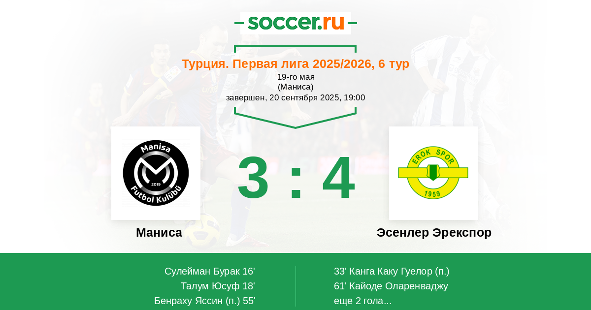 Маниса - Эсенлер Эрекспор: обзор матча 20 сентября 2025