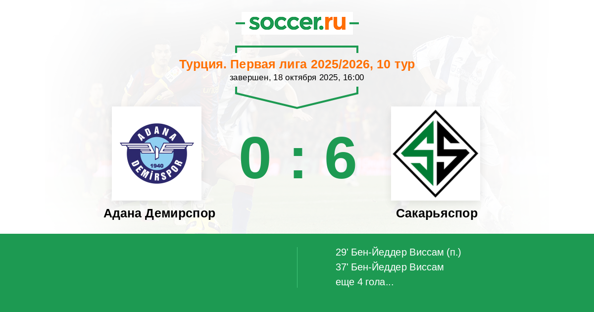 Адана Демирспор - Сакарьяспор: обзор матча 18 октября 2025