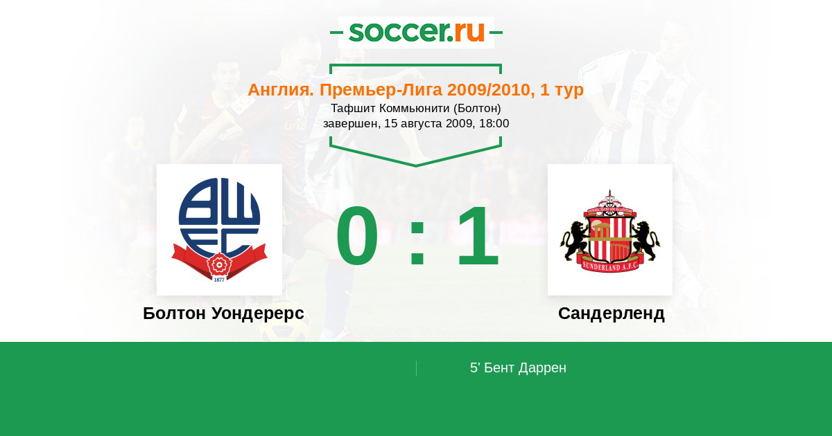 Болтон Уондерерс - Сандерленд: обзор матча 15 августа 2009