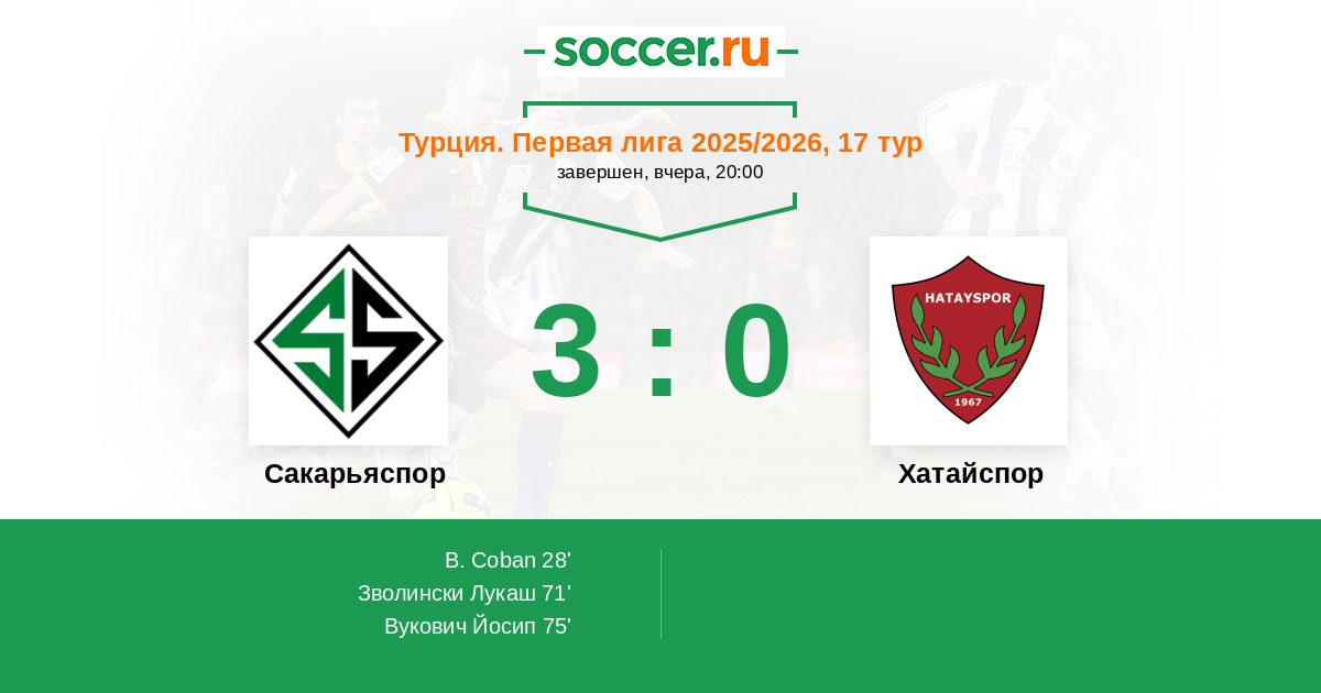 Сакарьяспор - Хатайспор: обзор матча 15 декабря 2025