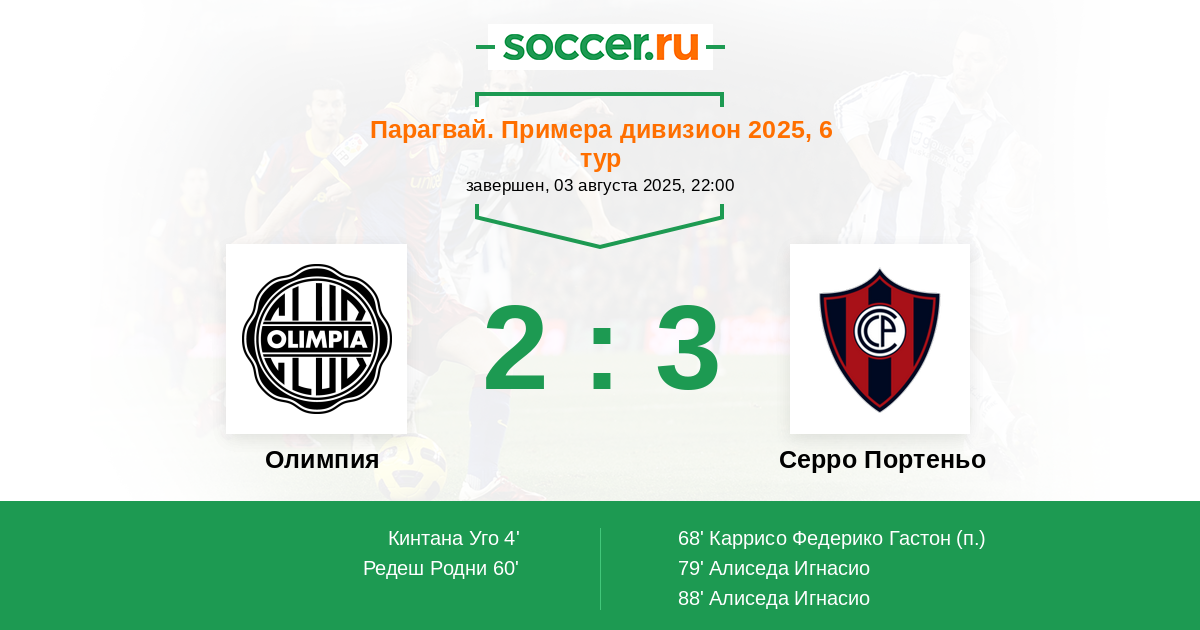 Олимпия - Серро Портеньо: обзор матча 3 августа 2025