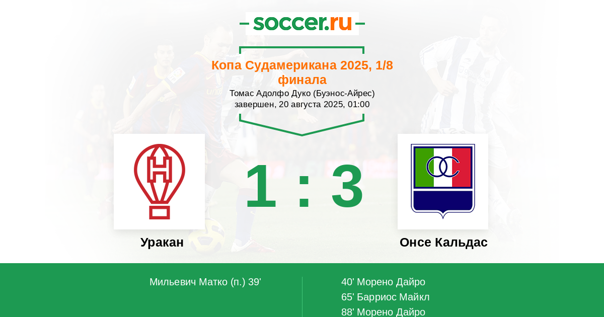 Уракан - Онсе Кальдас: обзор матча 20 августа 2025