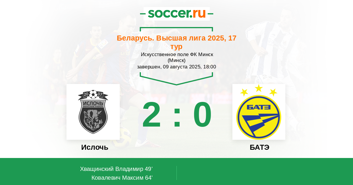 Ислочь - БАТЭ: обзор матча 9 августа 2025