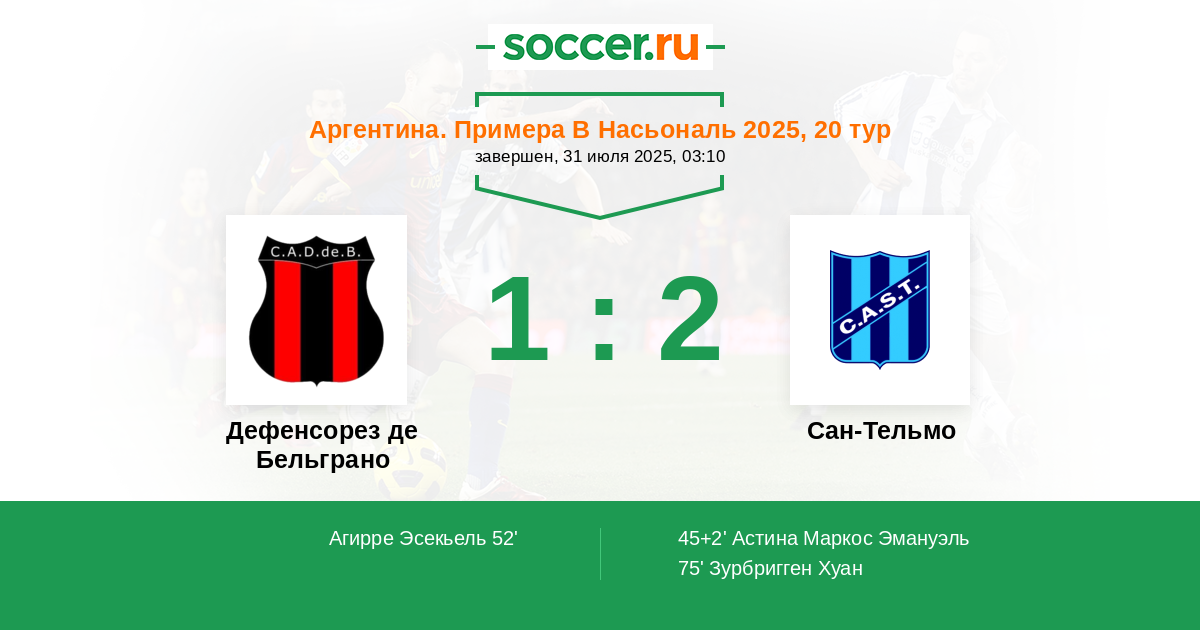Дефенсорез де Бельграно - Сан-Тельмо: обзор матча 31 июля 2025