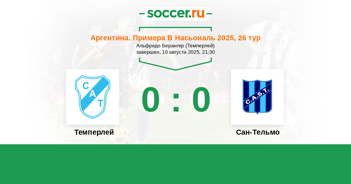 Темперлей - Сан-Тельмо: обзор матча 10 августа 2025