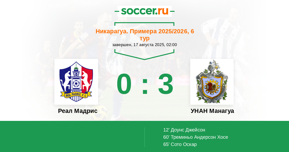 Реал Мадрис - УНАН Манагуа: обзор матча 17 августа 2025