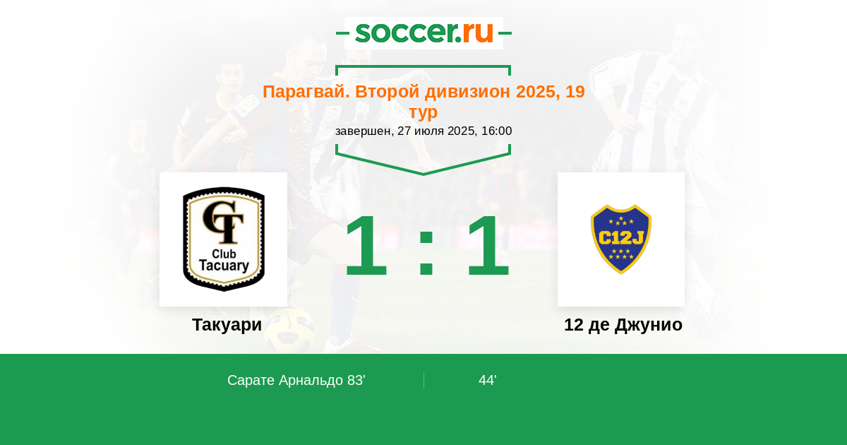Такуари - 12 де Джунио: обзор матча 27 июля 2025