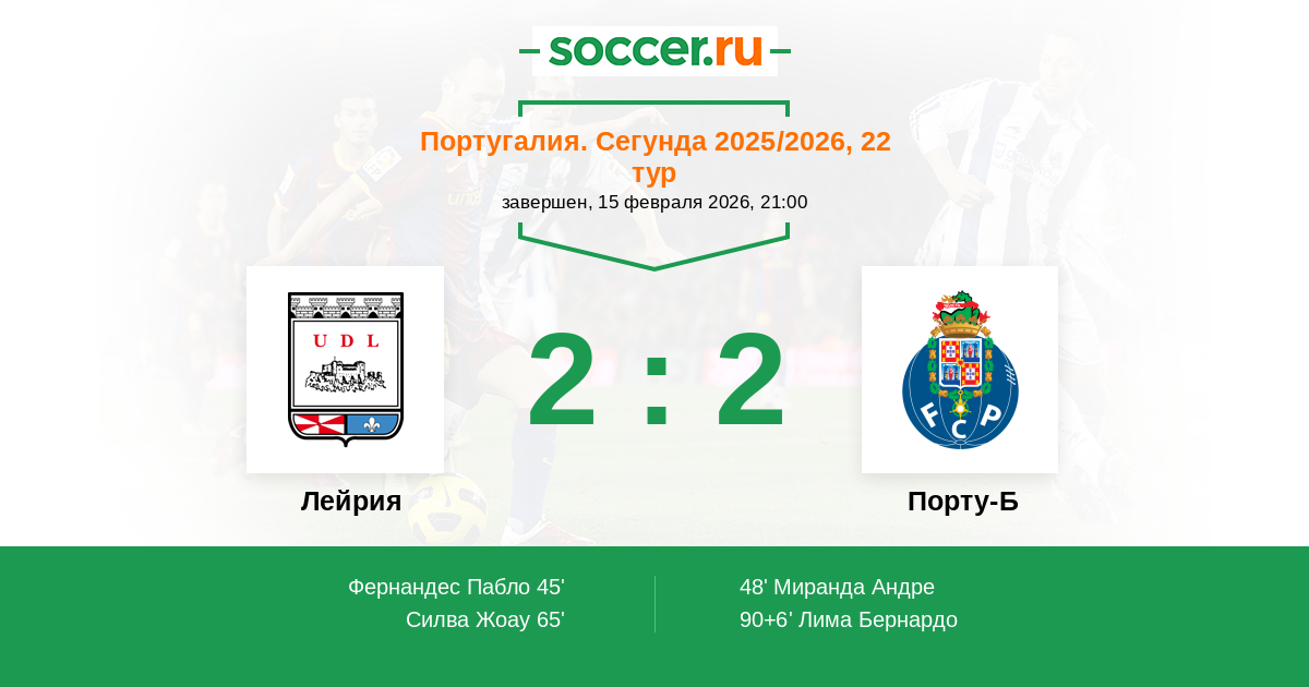Лейрия - Порту-Б: обзор матча 15 февраля 2026
