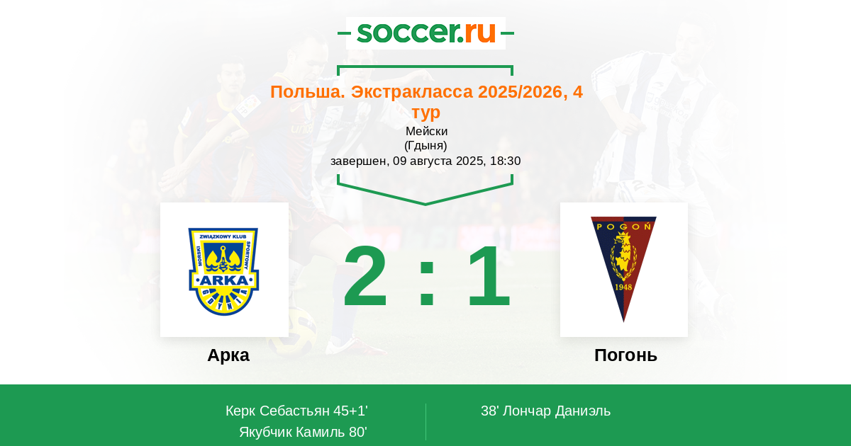 Арка - Погонь: обзор матча 9 августа 2025