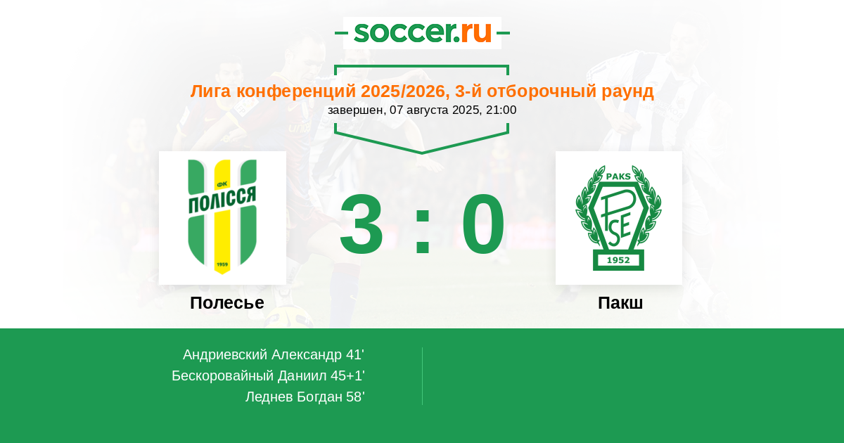 Полесье - Пакш: обзор матча 7 августа 2025