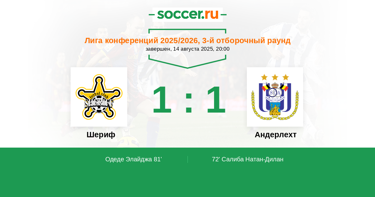 Шериф - Андерлехт: обзор матча 14 августа 2025