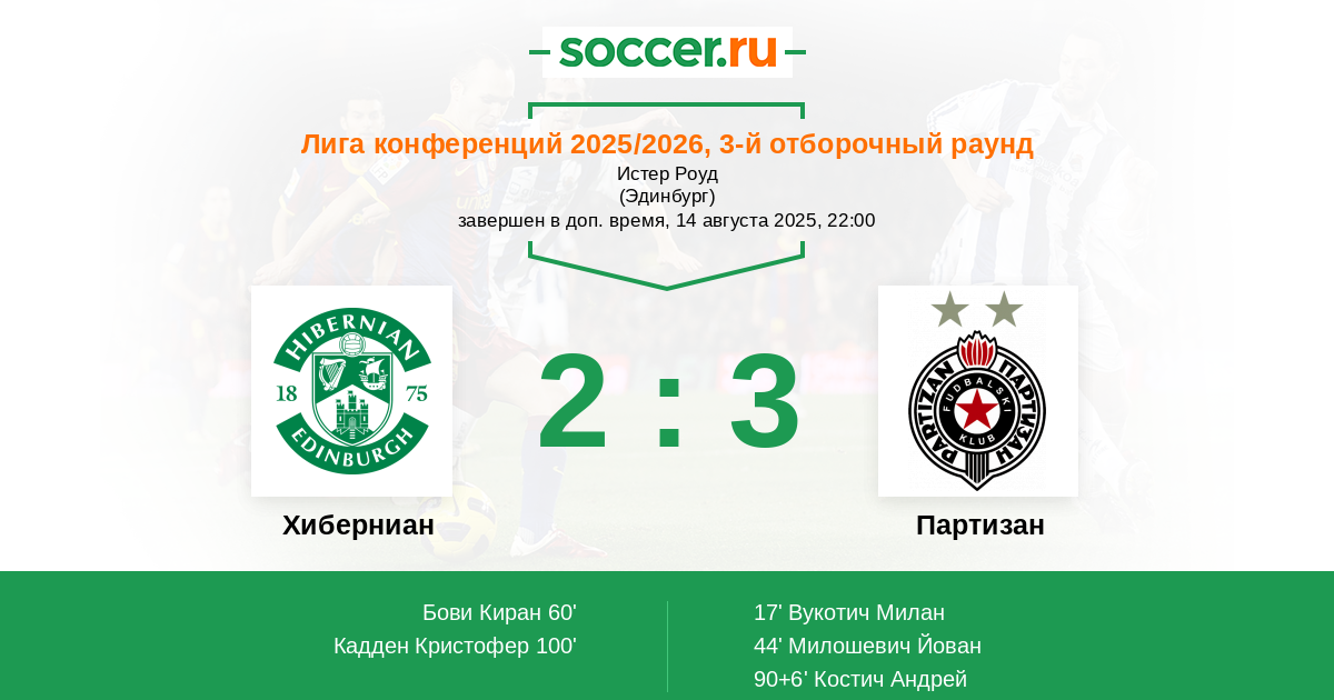 Хиберниан - Партизан: обзор матча 14 августа 2025