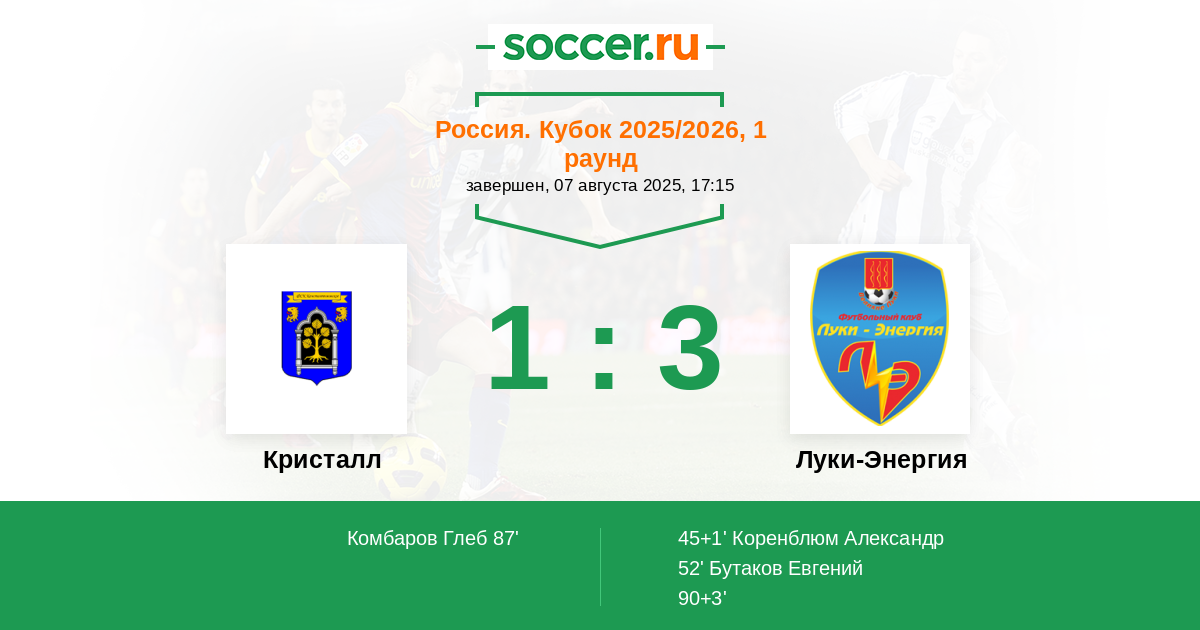 Кристалл - Луки-Энергия: обзор матча 7 августа 2025