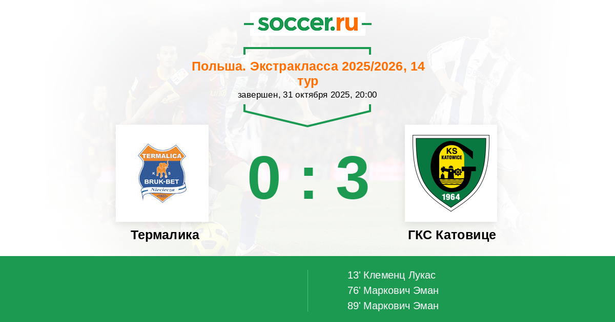 Термалика - ГКС Катовице: обзор матча 31 октября 2025