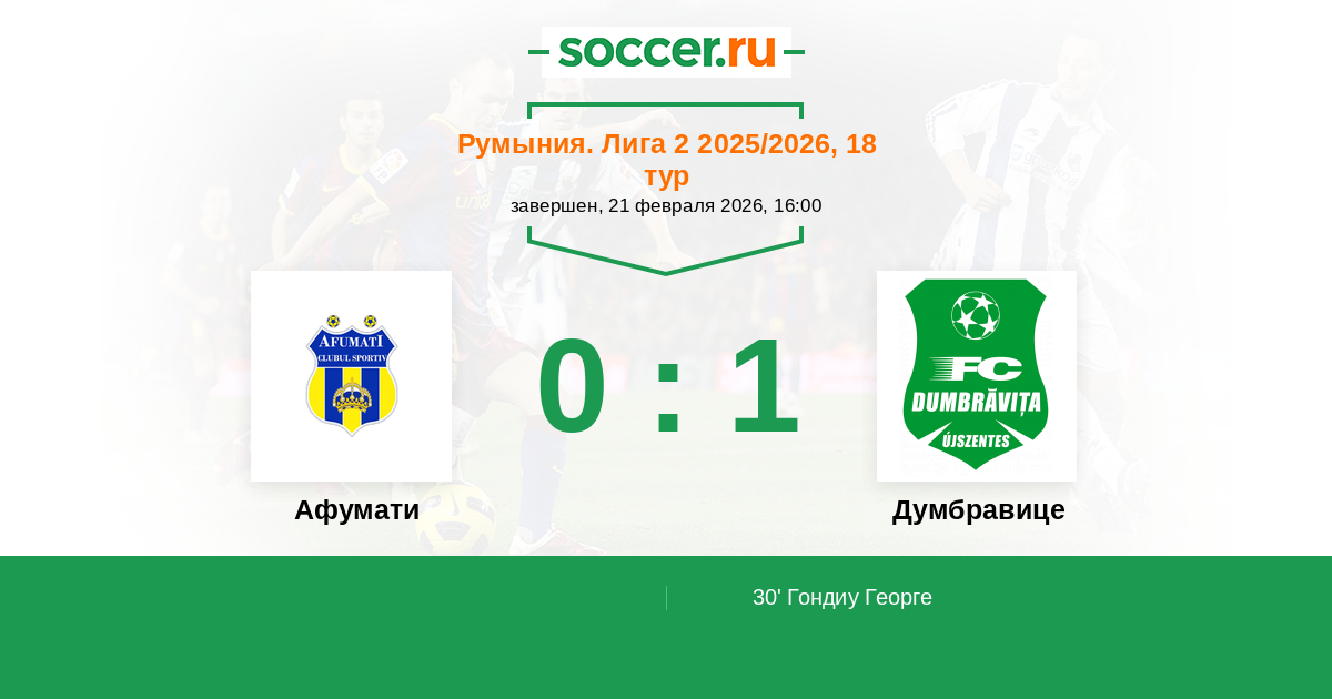 Афумати - Думбравице: обзор матча 21 февраля 2026