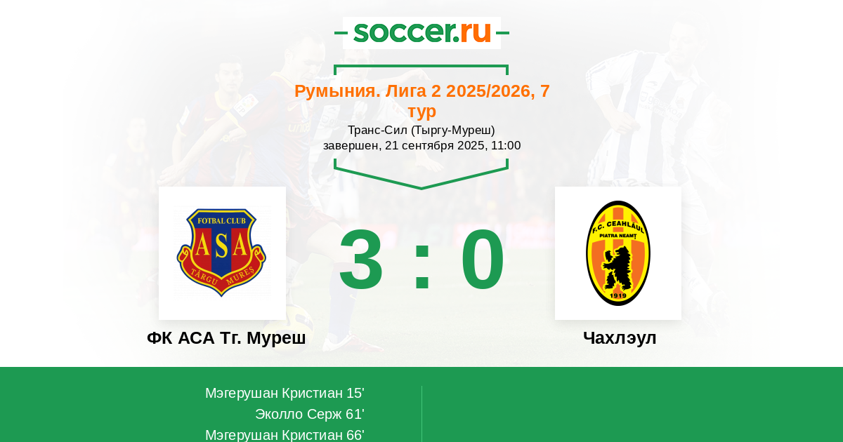 ФК АСА Тг. Муреш - Чахлэул: обзор матча 21 сентября 2025