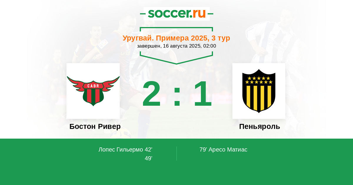 Бостон Ривер - Пеньяроль: обзор матча 16 августа 2025