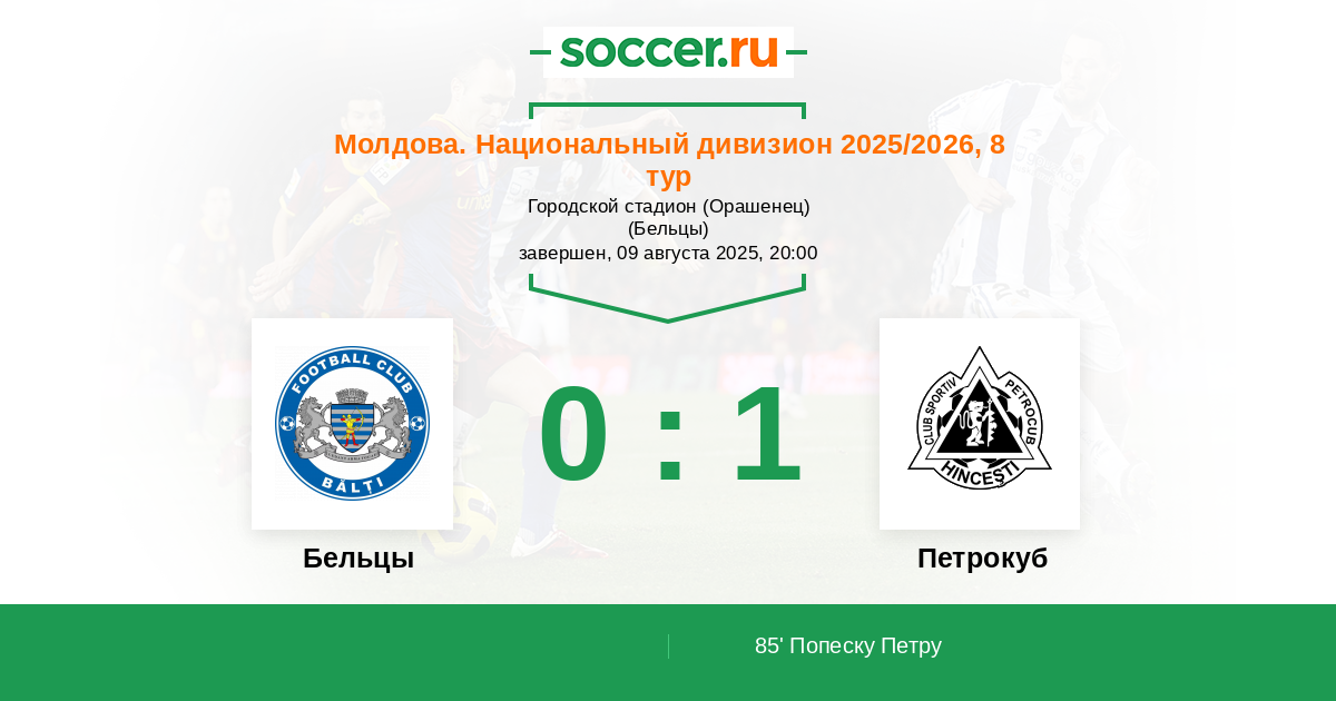 Бельцы - Петрокуб: обзор матча 9 августа 2025