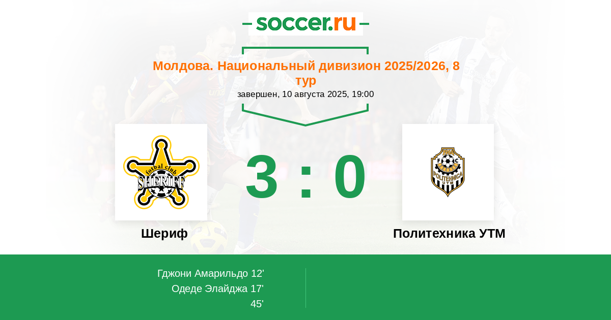 Шериф - Политехника УТМ: обзор матча 10 августа 2025
