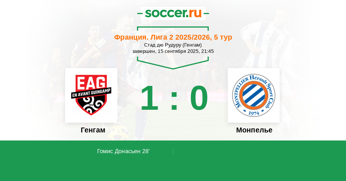 Генгам - Монпелье: обзор матча 15 сентября 2025