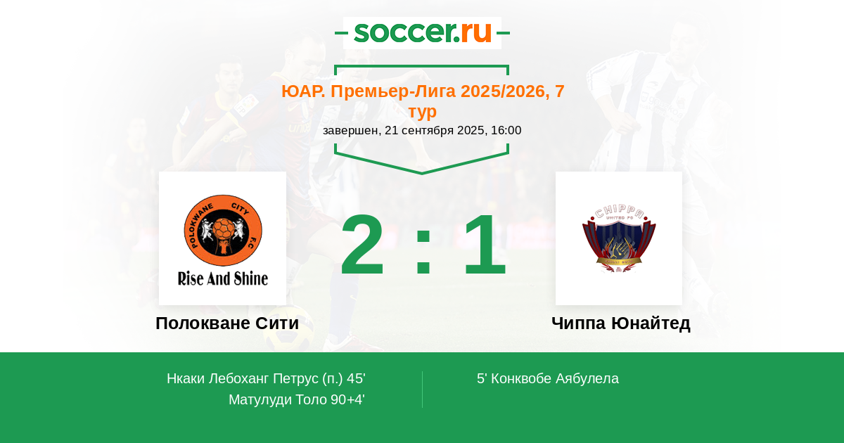 Полокване Сити - Чиппа Юнайтед: обзор матча 21 сентября 2025