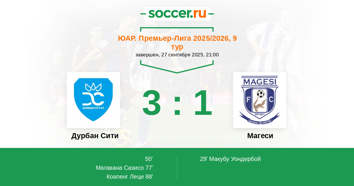 Дурбан Сити - Магеси: обзор матча 27 сентября 2025