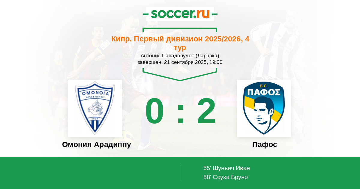 Омония Арадиппу - Пафос: обзор матча 21 сентября 2025