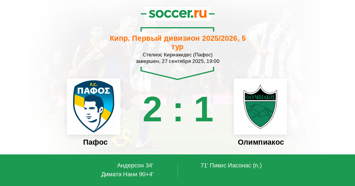 Пафос - Олимпиакос: обзор матча 27 сентября 2025