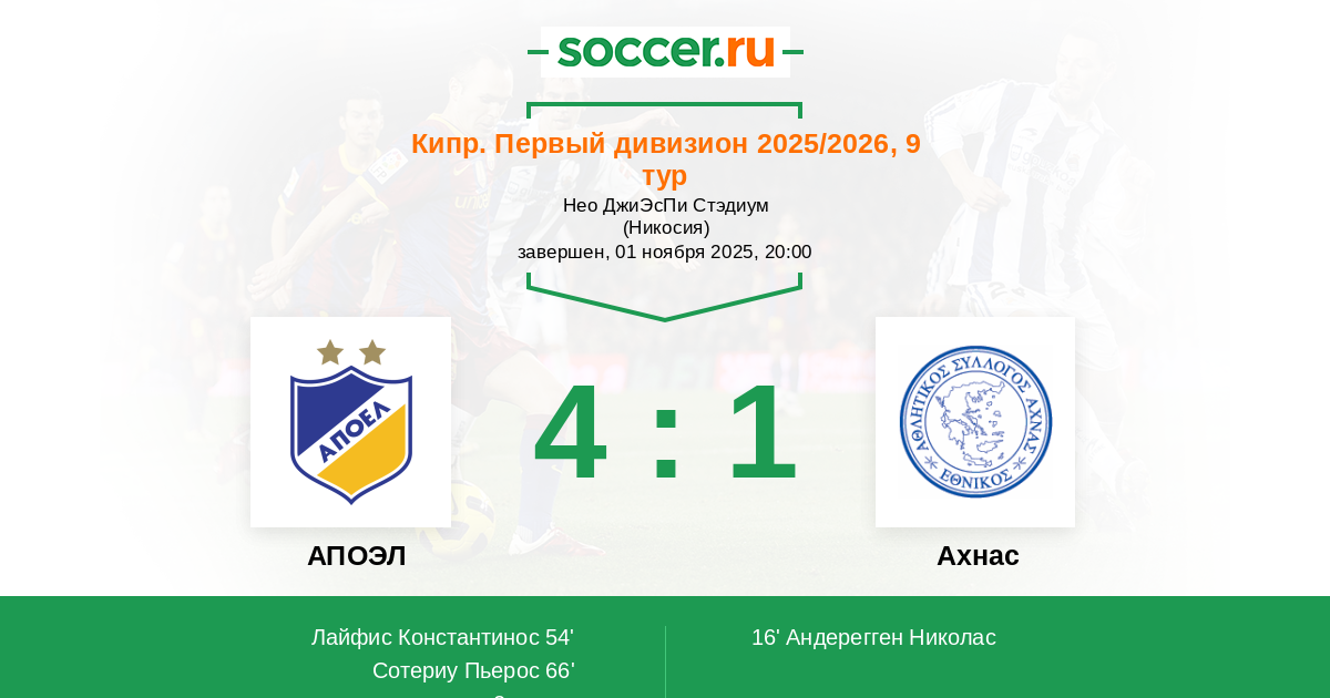 АПОЭЛ - Ахнас: обзор матча 1 ноября 2025