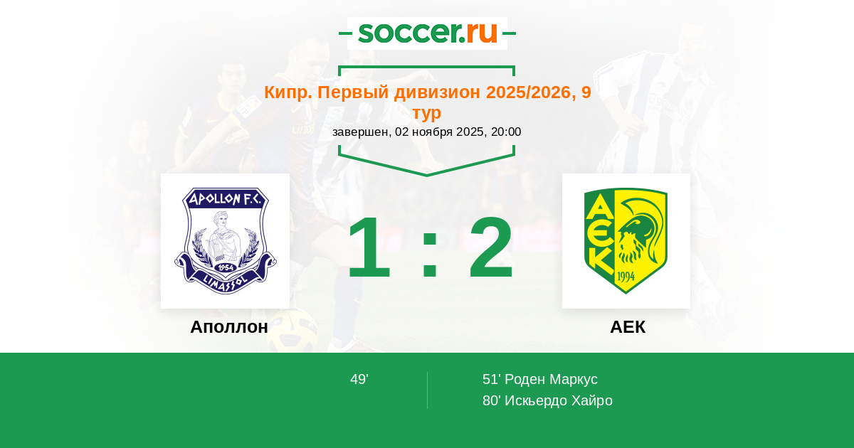 Аполлон - АЕК: обзор матча 2 ноября 2025