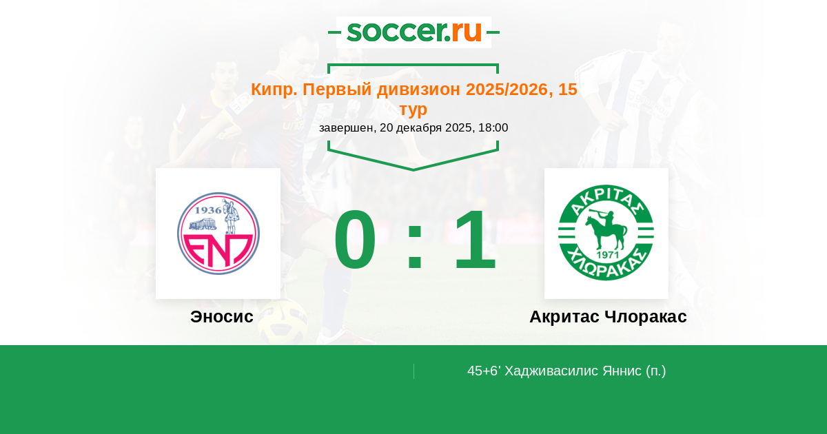 Эносис - Акритас Члоракас: обзор матча 20 декабря 2025