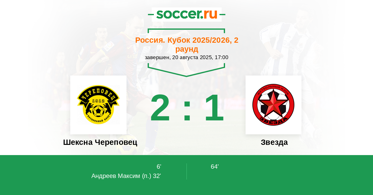 Шексна Череповец - Звезда: обзор матча 20 августа 2025