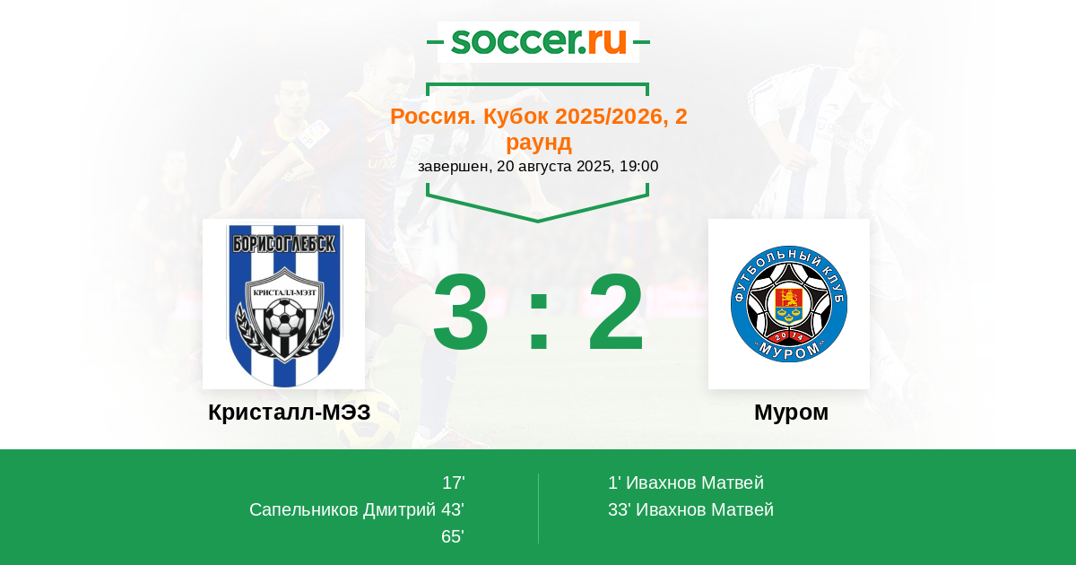 Кристалл-МЭЗ - Муром: обзор матча 20 августа 2025
