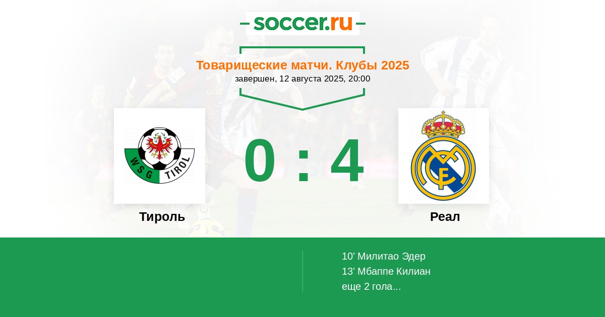 Тироль - Реал: обзор матча 12 августа 2025