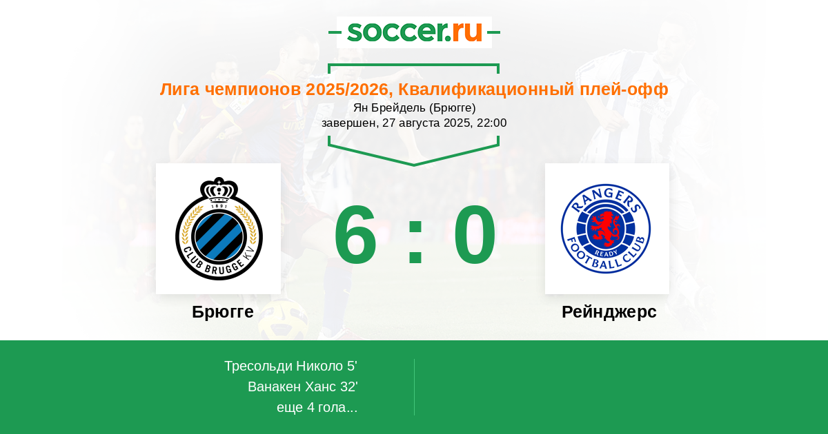 Брюгге - Рейнджерс: обзор матча 27 августа 2025