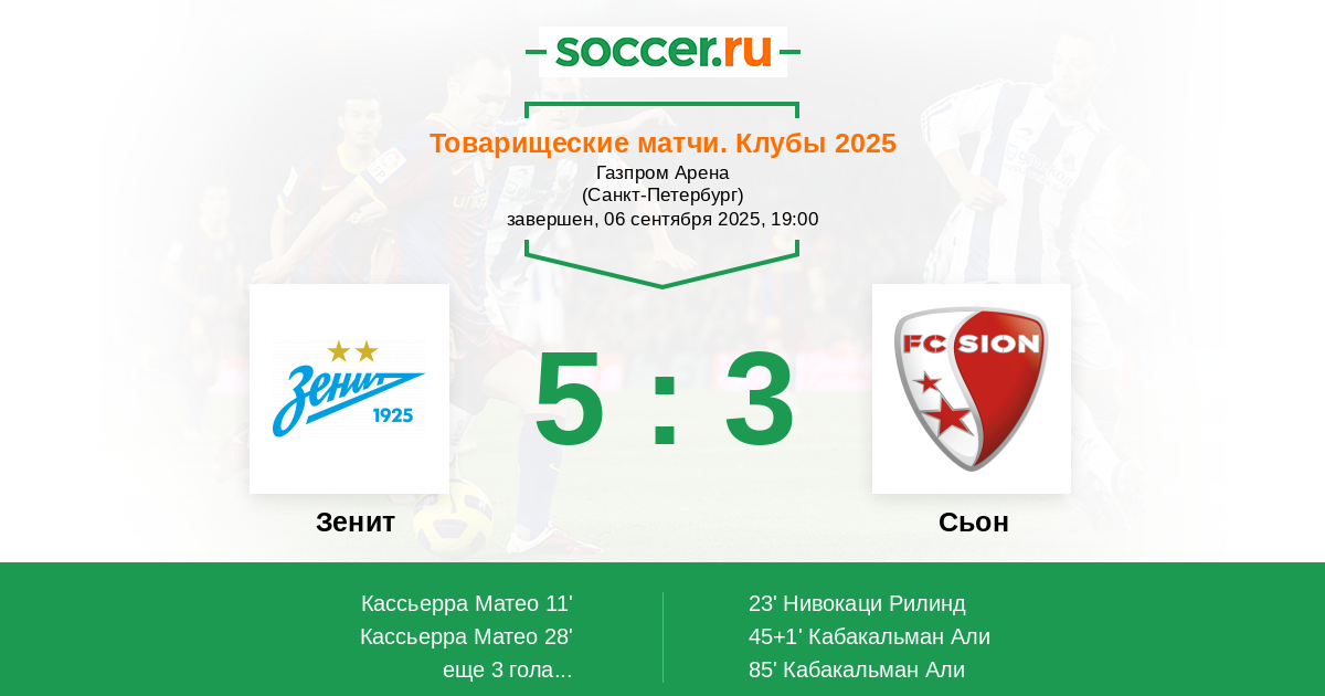 Зенит - Сьон: обзор матча 6 сентября 2025