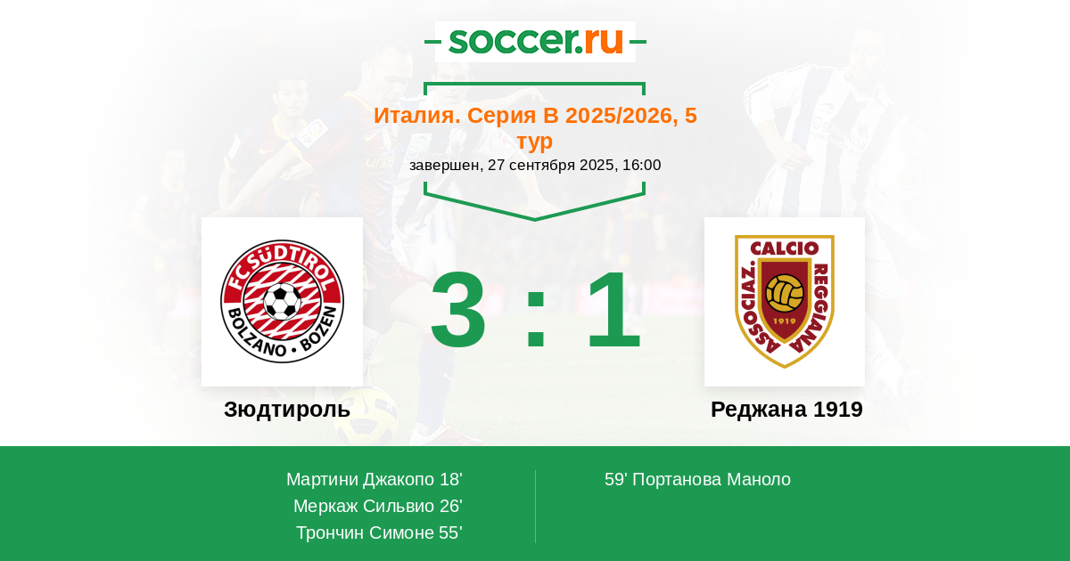 Зюдтироль - Реджана 1919: обзор матча 27 сентября 2025