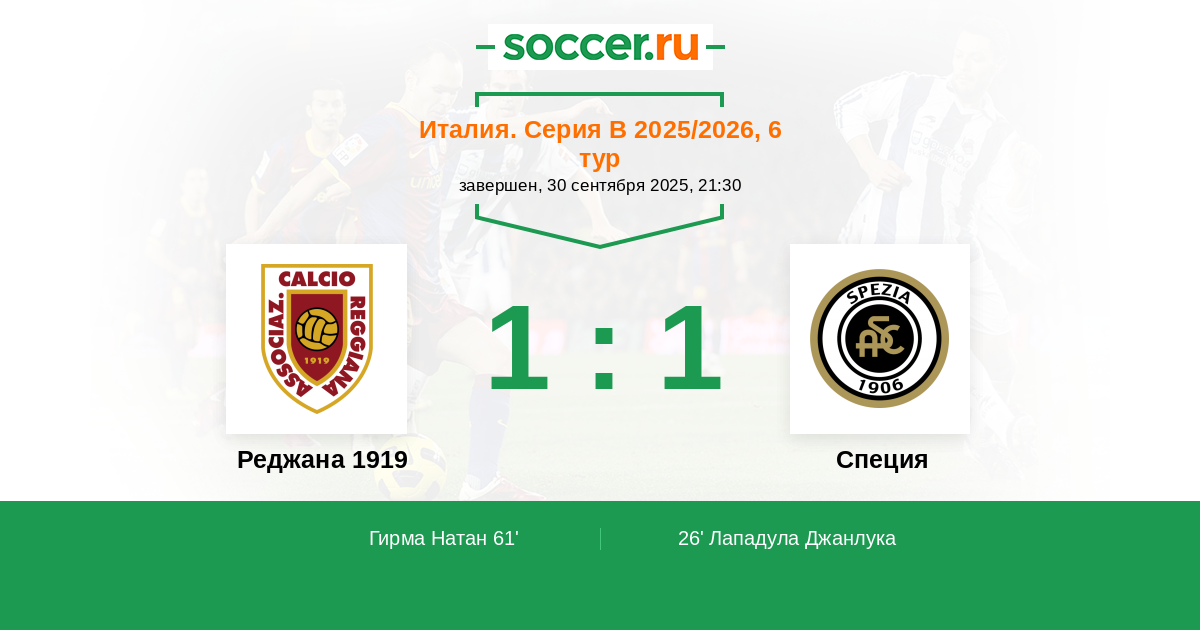 Реджана 1919 - Специя: обзор матча 30 сентября 2025